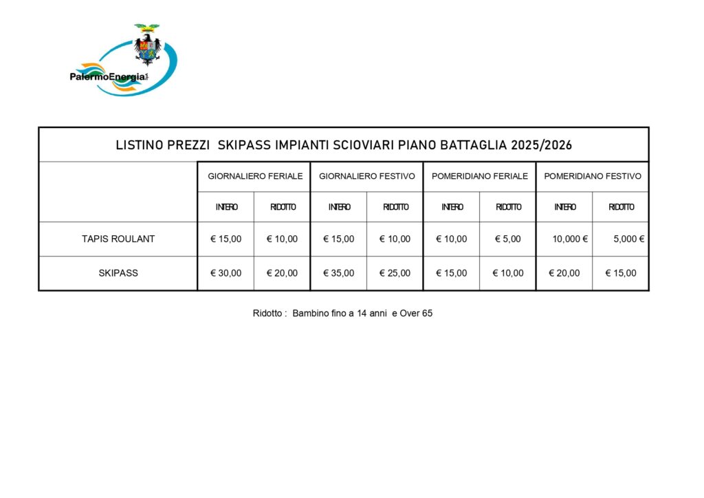 Prezzi Skipass 2025 – 2026 – Impianti sciistici Piano Battaglia